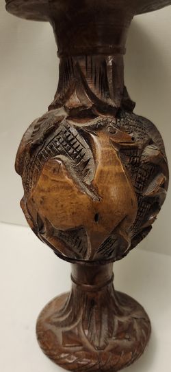 Vase Olive Wood Hand Carved Wooden Palm Tree Animal Plants Vintage$12Los Angeles, CA