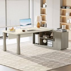 New in a sealed box Tribesigns 71 Inch L-Shaped Desk, Executive Desk with Storage Shelves with Cabinet for Home Office, Gray&White(D796)$185Yorba Linda, CA