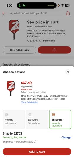 Onix Graphite MOD Z5 Carbon Fiber Pickleball Paddle with Wide-Body Shape, Honeycomb Core, Graphite Face & Cushion Comfort Pickleball Paddle Grip$40Apopka, FL