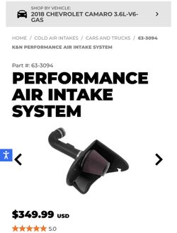 6th Gen Camaro V6 K&N Cold Air Intake For Sale $200Mount Vernon, NY