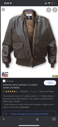 Authentic US Army Leather Jacket WWll Style Size Medium $250Roy, WA