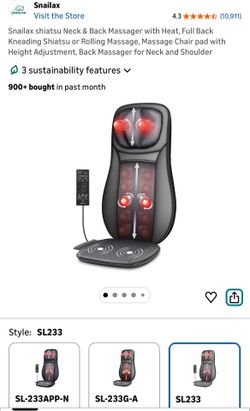 Snailax shiatsu Neck & Back Massager with Heat, Full Back Kneading Shiatsu or Rolling Massage, Massage Chair pad with Height Adjustment, Back Massager$100Sunnyvale, CA