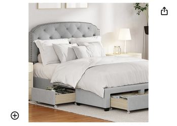 Queen Panel Bed Frame With Storage Drawers and Diamonds Button Tufted Nailhead Trim Headboard - Platinum Color$80Santa Ana, CA