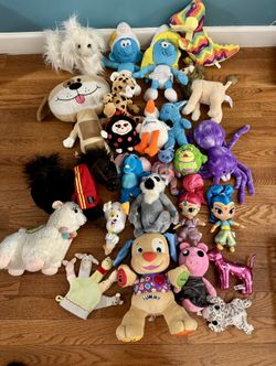Kids Toy Lot # 13 (Stuffed Animals, Fisher Price musical puppy, Shimmer Shine, Smurfs, Piggy) $10 cash at pickup in Apex$10Apex, NC