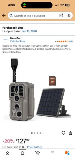 GardePro X66 Solar Trail Camera With Cellular$100Newark, NJ