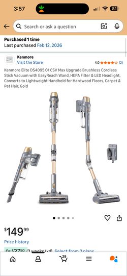 Kenmore Elite DS4095 Vacuum$120Newark, NJ
