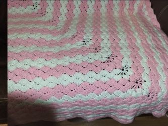 Blanket Pink And White Crocheted 66" X 104" Blanket, Comforter, Bedspread, Quilt $10Chandler, AZ