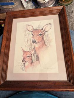 Print Of Deer Doe And Fawn By Paul Whitney Hunter $40Clifton Forge, VA