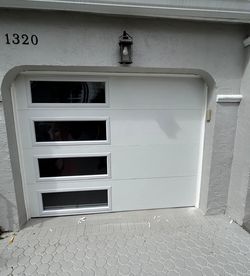 Garage Door 16x7 Modern Flush White With Long Frosted Windows On The Side Hurricane Proof $5,500Miami, FL
