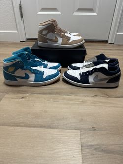 Jordan 1’s (tan gum, aquatone, midnight navy)$315Commerce City, CO