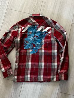 OFF-WHITE Virgil Abloh Zip Check Shirt Jacket with Skull Logo Print Red Blue XL$285Pompano Beach, FL