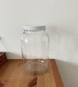 Vintage Gallon Jar Clear Glass Canister White Screw Lid $6Portland, OR