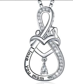 New: " I love You Mom"925 Sterling Silver heart-shaped Necklace Pendant
