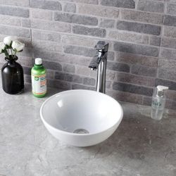 NEW White 16 in. x 13 in. Ceramic Round Modern Bowl Vessel Sink in White Above Counter$50Arcadia, CA