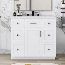 NEW WHITE Modern White 36 Inch Freestanding Bathroom Vanity Cabinet With Resin Integrated Basin With 4 Drawers 1 Soft Close Door, Multi Functional Sto$320Arcadia, CA