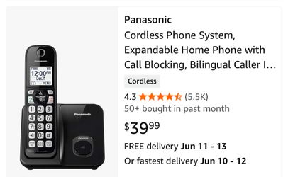 Panasonic Cordless Phone With Caller ID$25Houston, TX