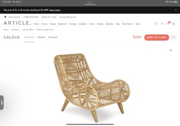 Article. “Calova” Lounge Chair (Indoor / Outdoor) Retail Price $449$180Charlotte, NC