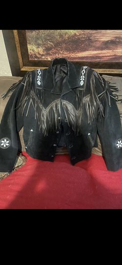 Vintage 90s Echo Mountain Black Suede Fringe Leather Jacket, Beaded Western Wear, Size Large$100Baytown, TX