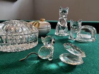Swarovski Crystal Figurines And Crystal Jewelry Box, Antique Hand Painted Porcelain Jewelry Box $100Duluth, GA
