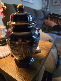 The image shows a large, cobalt blue Japanese ginger jar with a lid.$20Hillsboro, OR