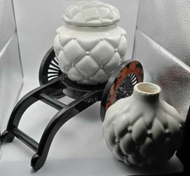 The image displays a set of white ceramic decorative items, featuring a distinctive quilted or tufted texture. $40Hillsboro, OR