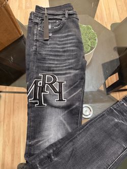 Amiri Embroidered Staggered Logo Jeans Storm Grey Black White$350Dearborn, MI