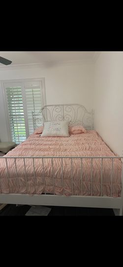 Good Condition- Queen White Metal Bed Frame $80Duncanville, TX