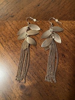 Pair of LOFT gold long chain tassel fashion earrings with metal feather clusters - GENTLY USED, WORN ONCE OR TWICE$5Downers Grove, IL