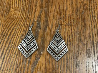 Pair of Francesca’s antiqued silver kite-shaped fashion earrings with geometric pattern - GENTLY USED, WORN ONCE OR TWICE$5Downers Grove, IL