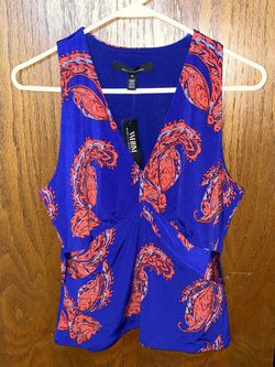 White House Black Market (WHBM) ruched, printed, sleeveless top - royal purple with red-orange paisley pattern - women’s size medium - NEW WITH TAGS$19Downers Grove, IL