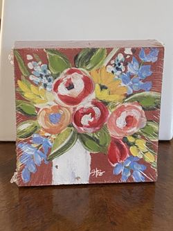 Wooden block with floral scene / bouquet of flowers in a vase - home / garden decor - BRAND NEW WITH TAGS, NWT$7Downers Grove, IL