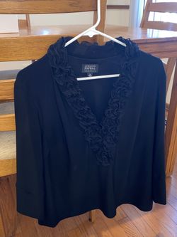 Women’s Adrianna Papell black 3/4-length sleeve dress shirt / blouse w/ rosette ruffles along v-neck - IMPECCABLE CONDITION$20Downers Grove, IL