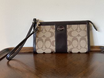 COACH brown and taupe convertible wristlet / wallet with signature “C” pattern and leather accents$40Downers Grove, IL