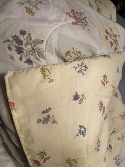 Queen Yellow/white/flowers Reversible Comforter, Drapes, shams, skirt $60Naperville, IL