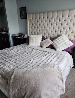 Eastern King Tufted Platform Bed Used Beige Color$99Pomona, CA