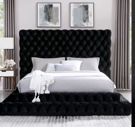 Brand New Glam velvet Black Tufted Pedestal Platform Queen Size Bed $625Riverside, CA