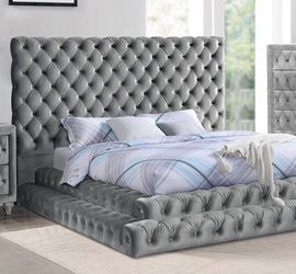 Queen Size Brand New Glam Silver Grey Tufted Pedestal Platform Bed$599Barstow, CA