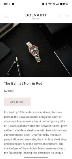 Bolvaint Paris Balmat Noir In Red Men's Watch$450Bell Gardens, CA