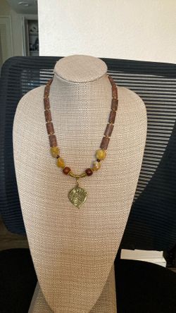 Jasper Necklace With Gold Tone Embellishment $35San Diego, CA