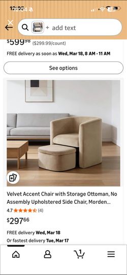 Velvet Accent Chair With Ottoman$195Bakersfield, CA