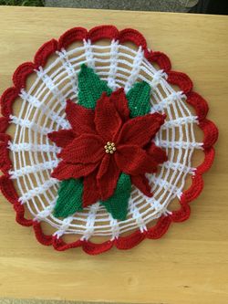 Crochet Red & Green Flower Doily $10Stockton, CA