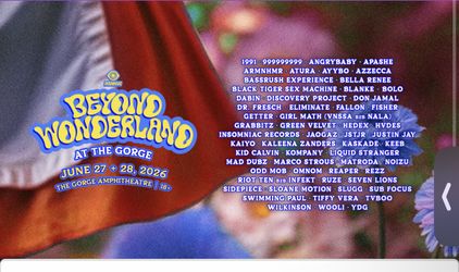 Two Beyond Tickets At The Gorge In Washington $260Rosemead, CA