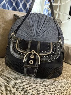 Coach Sojo Black Signature Jacquard ;suede And Leather Studded Hobo$400Madera, CA