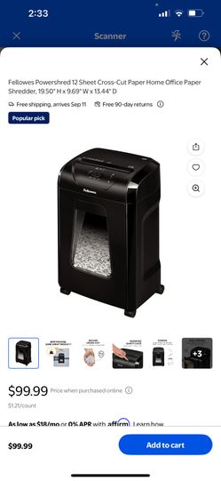 Fellowes Powershred$60Lacey, WA