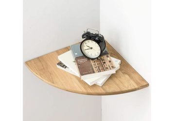 Corner Shelf,16inch Natural Oak Solid Wood Floating Corner Shelves Wall Mount Round End Floating Speaker Rack with Wire Hole for Small Plant for Bedro$10Los Angeles, CA