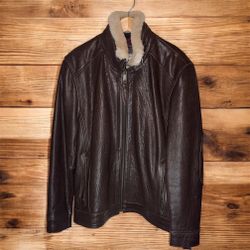 Marc New York By Andrew Marc Size Large Leather Jacket With Shearling Collar $200Brooklyn, NY