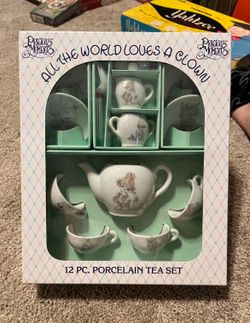 Precious moments, all the world loves the clown, 12 piece porcelain tea set. Vintage 1985.$25Richardson, TX