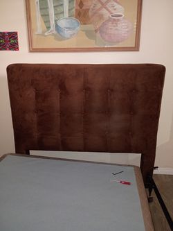 Headboard upholstered brown suede queen size with metal queenmattress frame 30.00$30Scottsdale, AZ