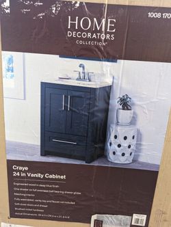 New Clady 25x19x35 Single Sink Bath Vanity In Deep Blue With Silver Ash Culture Marble Top $259Fontana, CA