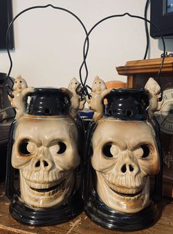 Vintage Ceramic Halloween Skull and Ghost Lantern Tea Light Candle Holder$40San Antonio, TX